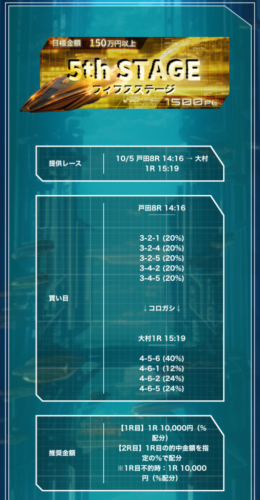 コロガシと書いていた場合、必ず2レース分の情報が公開されるから、2レース分を1セットとして考えるよ。